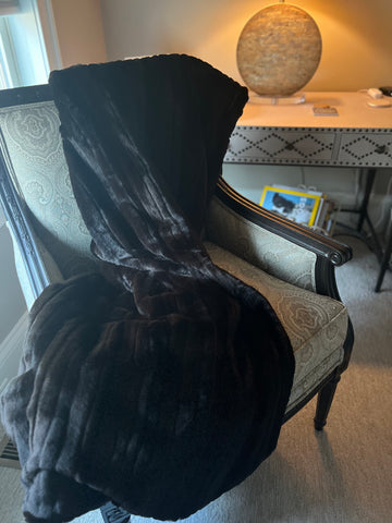 - Indulge yourself with cozy warmth and luxurious comfort with this stunning and elegant mink faux fur throw blanket in your choice or black or brown. This double-sided, luxe short pile mink faux fur is incredibly soft and plush.